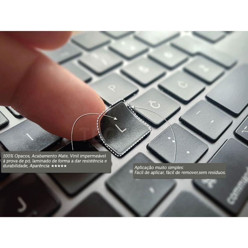 Os teclados autocolantes são desenvolvidos com base na seleção de materiais de qualidade que garantem resistência, durabilidade e facilidade de aplicação.Após aplicação estes ficam praticamente impercetíveis, O vinil mate garante a ausência total de brilho, em diferentes ângulos de iluminação. sendo que dispomos de várias dimensões adequadas às diferentes marcas e modelos de computadores.