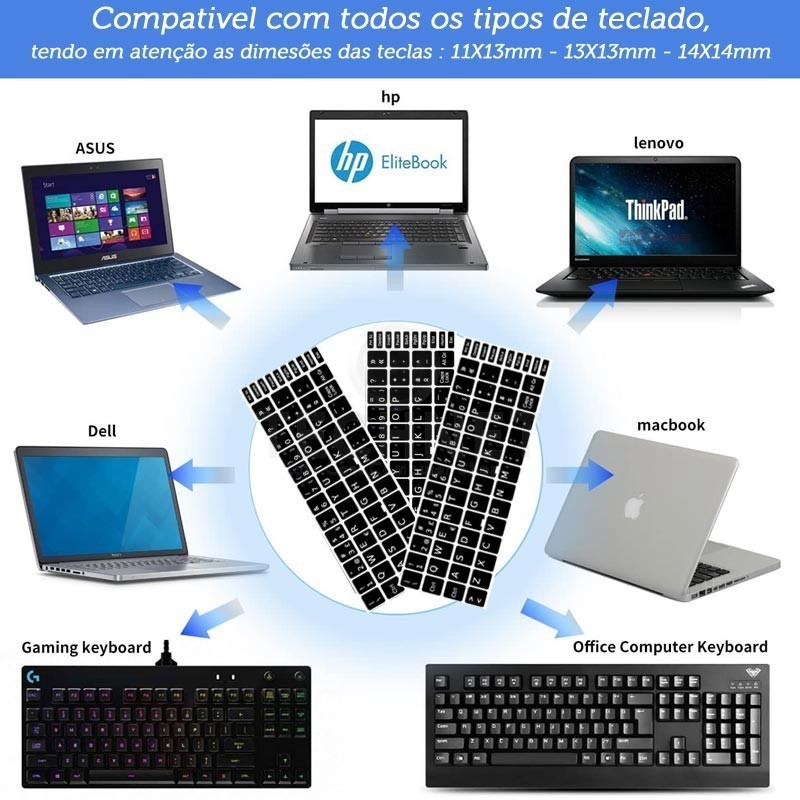 Exemplos de colocação de Teclas Autocolantes para Teclados Portátil & Desktop PT | ||